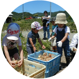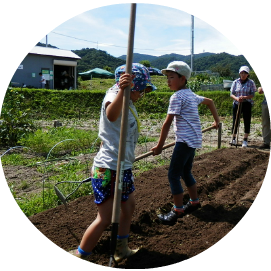 実った野菜を収穫する人気の体験農業です。夏前にはにんじんやじゃがいも、玉ねぎなど、秋冬にはさつまいもや大根などが定番となっています。収穫した後は、次の野菜を植える為の追肥作業や種まきなどがコースとなる時期があります。収穫量や野菜の種類に応じて、当日収穫した野菜をお持ち帰り頂く場合と、その場でお食事会をする場合があります。「にんじん食べれなかったのに~(T - T)」というお母さんのうれしい悲鳴が聞こえたり・・