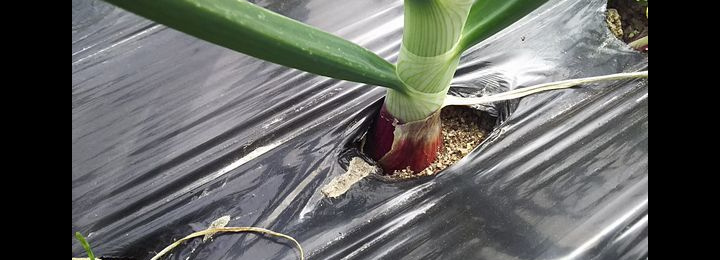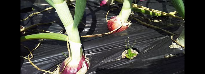 昨年11月に植えた「赤玉ねぎ」の新玉ねぎで、通常しっかりした肉質の1個重200~250g位の中玉中生種です。ポリフェノールを含む赤玉ねぎはサラダにも使える品種です。