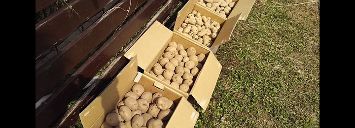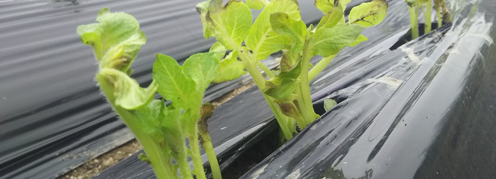 今年3月に植えた北海道産種じゃがいも(メークイン)の収穫際となります。